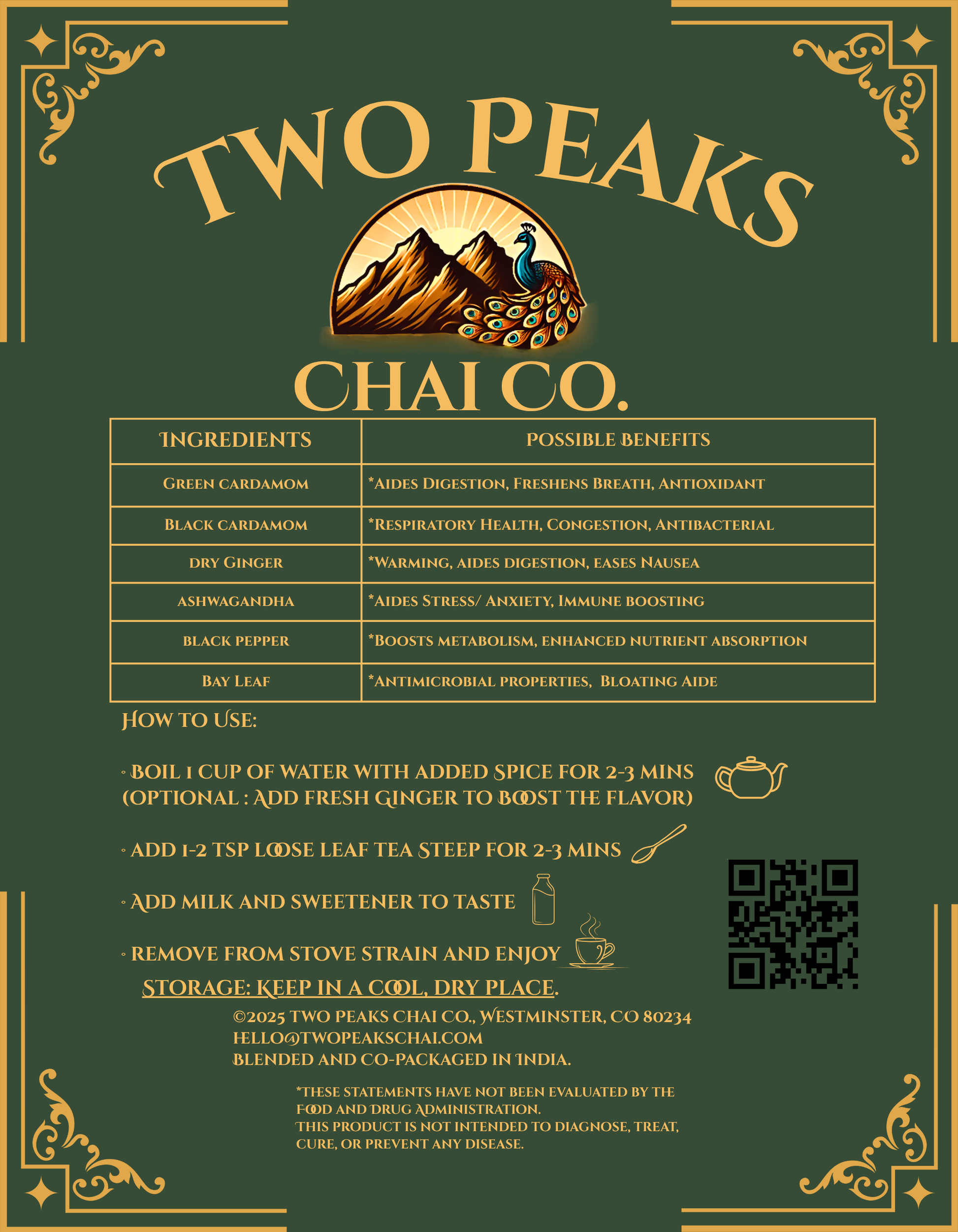 Green and black cardamom meet dry ginger, ashwagandha, black pepper, and bay leaf in a blend rooted in tradition and designed for daily ritual. Paired with our Premium Assam Tea, this is the complete, no-compromise chai experience.